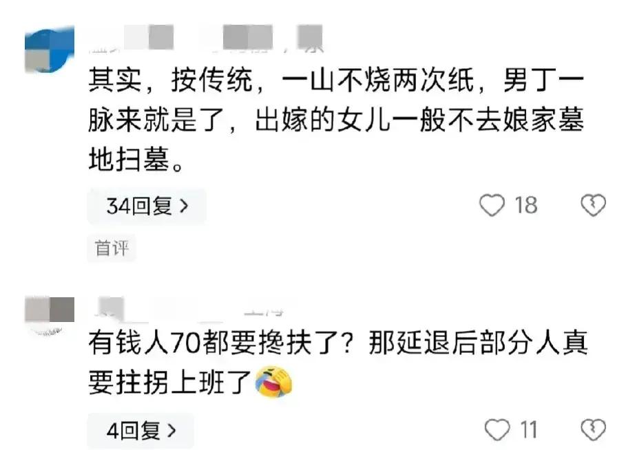 也有人認爲,按傳統一般都是男丁一脈在清明節掃墓,出嫁的女兒一般不會去墓地祭拜,當然,規矩也是可以改變的。