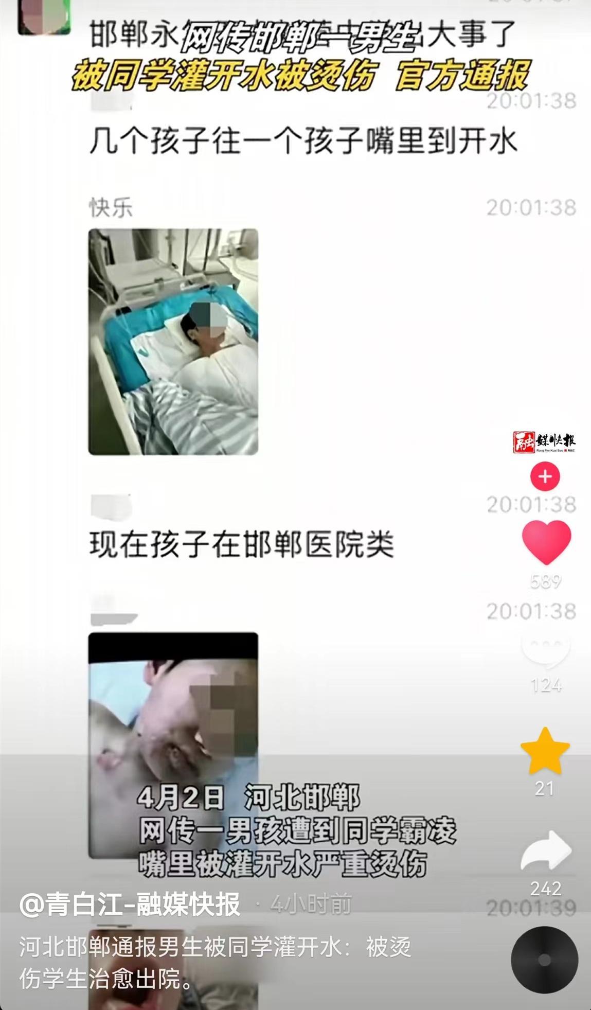 邯鄲初中生被灌開水後續:警方介入,官方通報引不滿,評論區淪陷