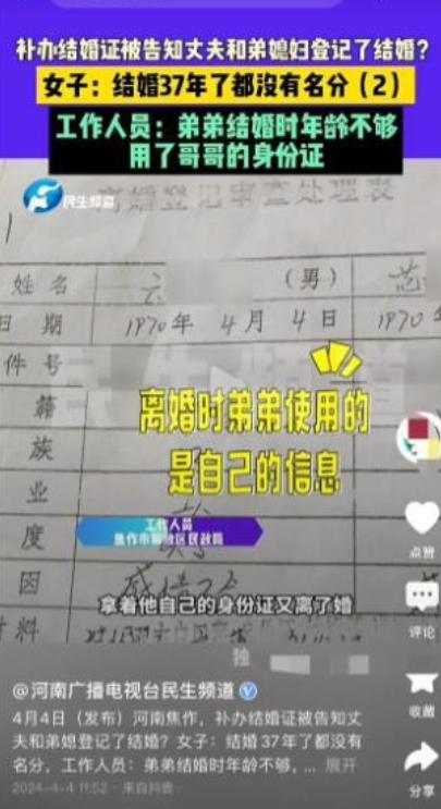炸裂!結婚37年卻發現自己還是未婚,丈夫的結婚對象竟是弟媳婦