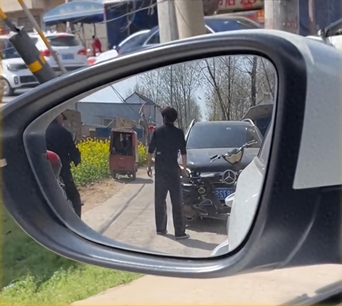 可能是因爲奔馳車質量比較好,大媽沒有將後視鏡掰扯下來。