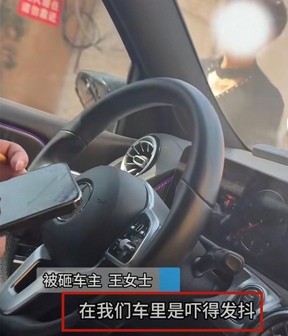 根據車主王女士的說法,當時大媽砸她車的時候,她不知道是什麼情況,她在車裏嚇得瑟瑟發抖。
