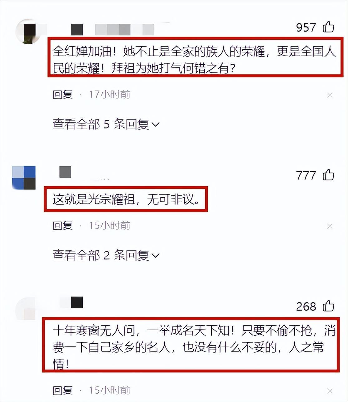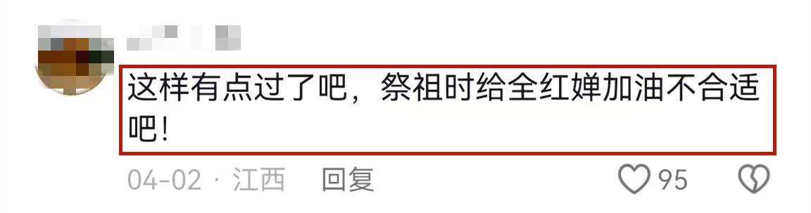 第一點,他們覺得全氏家族祭祖太高調了,將全紅嬋捧得太高了。