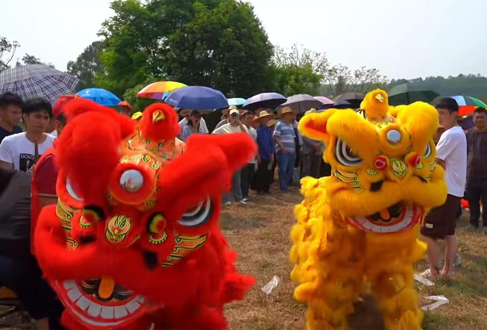 從視頻中還可以看到,全氏家族成員還進行了燒香、祭拜、舞獅等儀式。
