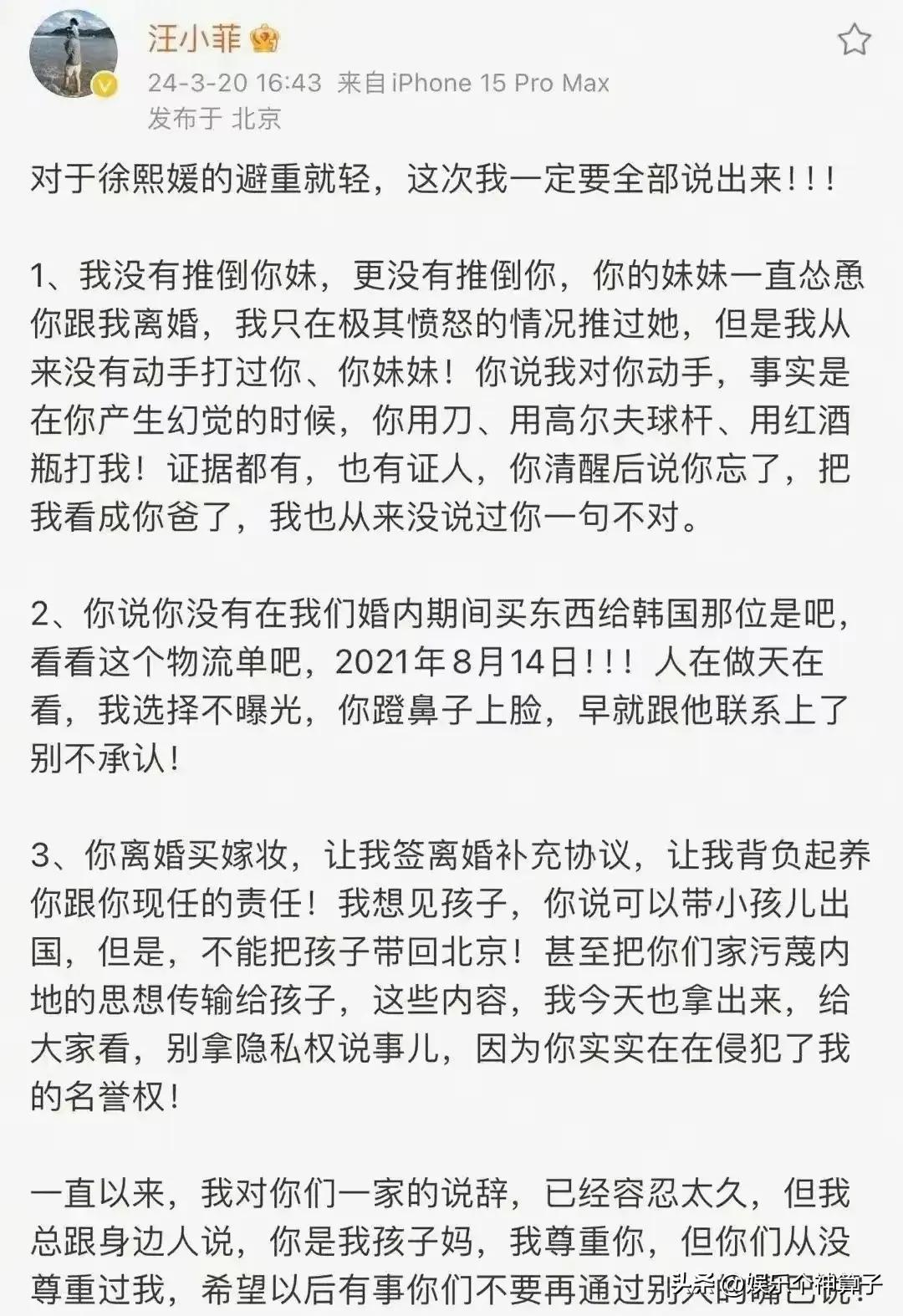 咱就說,汪小菲當時都曬出禮物郵寄清單了,另外,具俊曄住着豪宅,喫穿不愁,有人給孩子拿撫養費,還時不時還要跟大S撒糖,就這樣還大喊委屈,這……,很難評。
