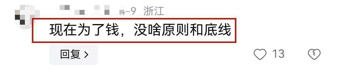 有網友直言“現在爲了錢,沒啥原則和底線。”