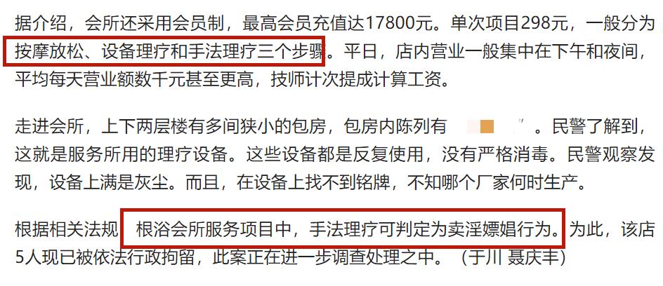 根據相關法律法規,該會所提供的手法理療可判定爲賣Y嫖娼行爲。