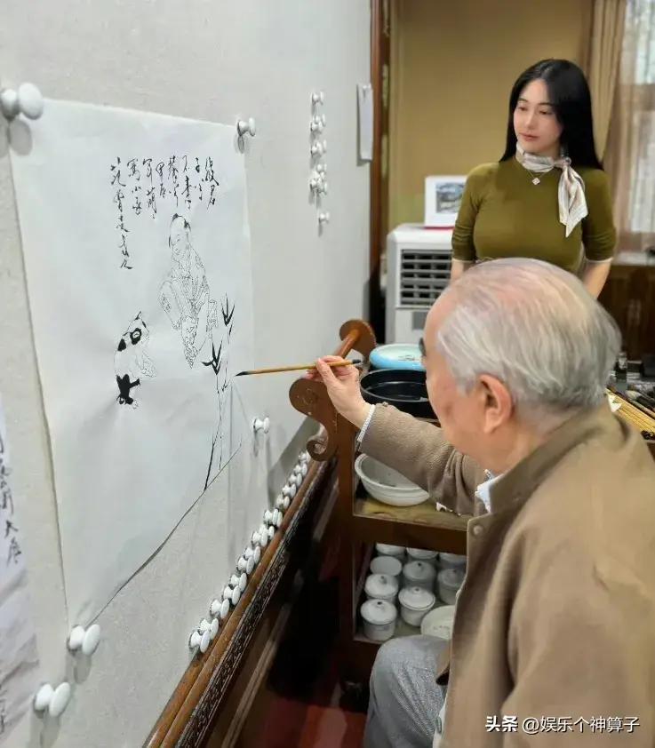 對於現任妻子,範曾沒有過多介紹,只透露名字叫徐萌,此外,還曬出兩人的合照,照片中,範曾一頭白髮,正在專心寫詩作畫,徐萌女士在一旁安靜的守候和觀摩,這畫面,有種相濡以沫的感覺。