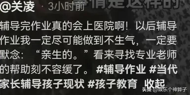 4月13日,演員關凌登上熱搜,這一次,並不是有了新作品,而是因爲給娃輔導作業直接被氣進醫院,網友紛紛表示:原來明星也逃不過輔導孩子功課呀!