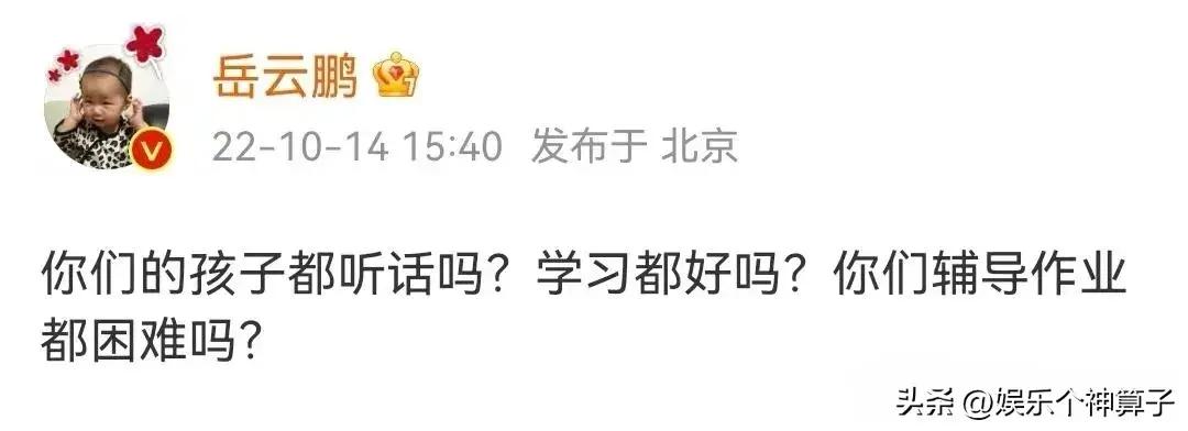 其實,何止關凌,明星輔導孩子作業遇到難事的例子還真不少,岳雲鵬就經常在網上吐槽,發文中透露着些許無奈。