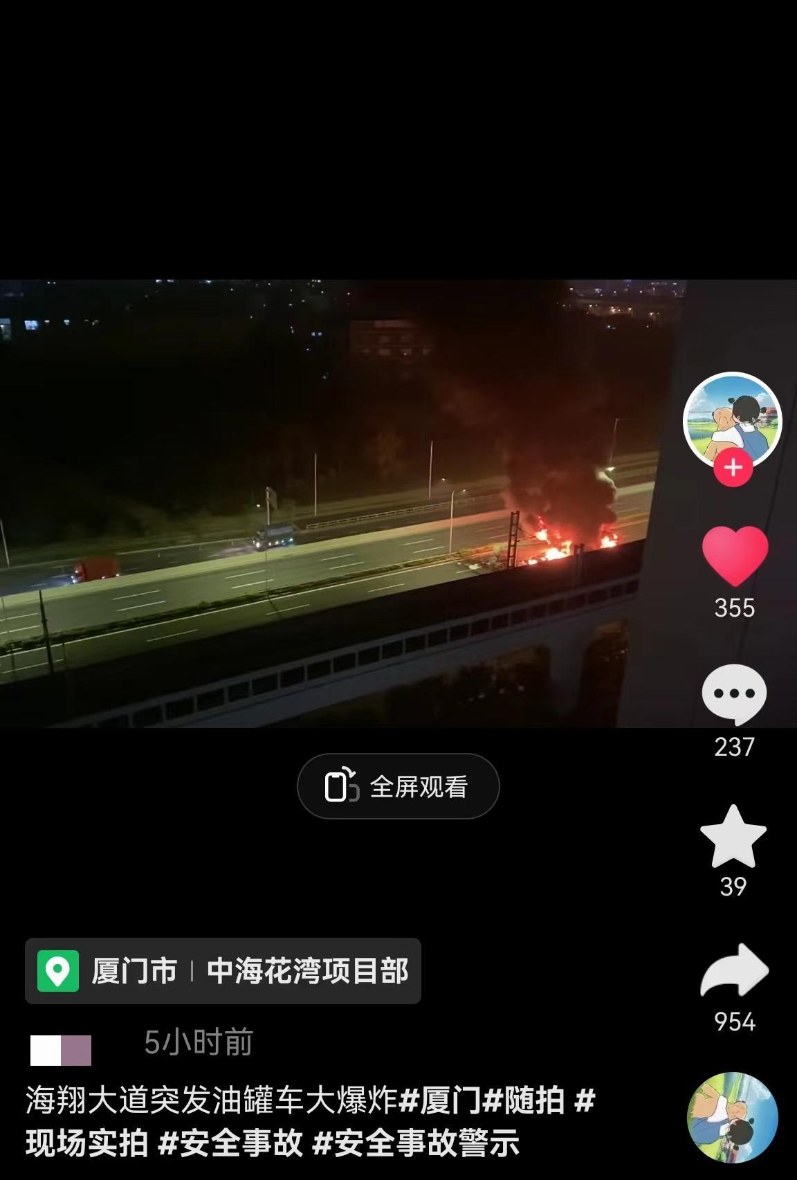 突發!廈門一油罐車發生爆炸,有人員傷亡,路人救人失敗情緒崩潰