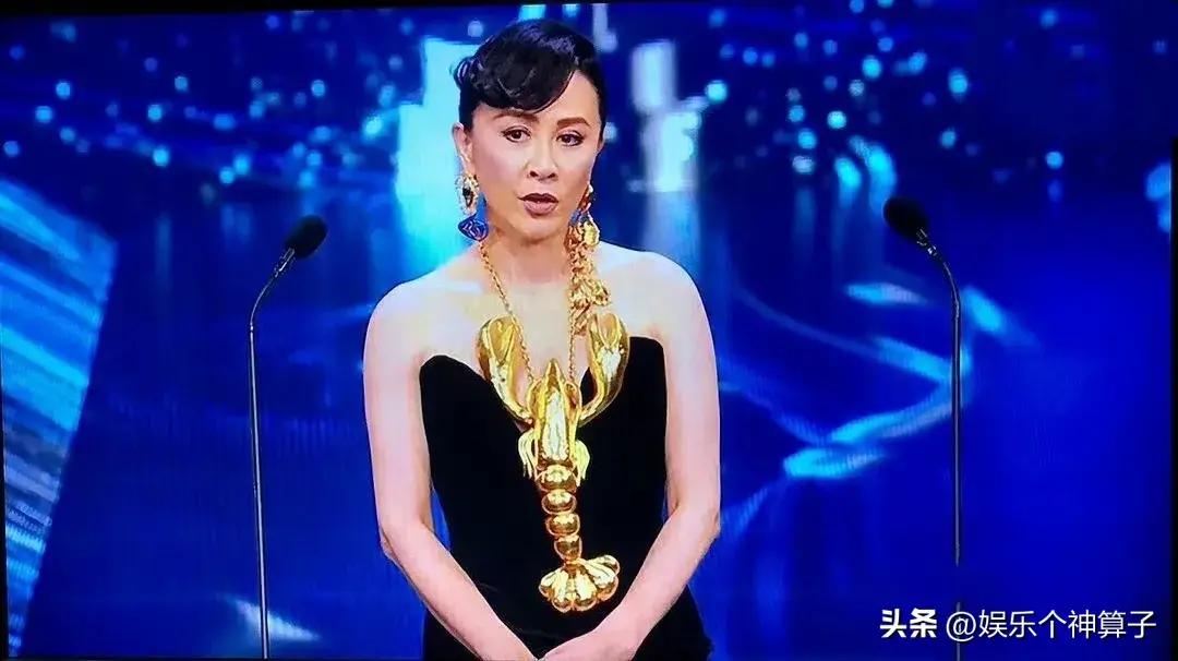 梁朝偉獲獎,最開心的應該是劉嘉玲了,特意穿了龍蝦裝在舞臺上頒獎,造型十分獨特。