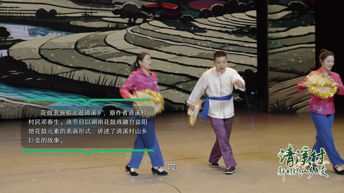 夜幕低垂,清溪劇院裏燈光通明,歌舞之聲此起彼伏,熱鬧非凡。一到晚上,白天還在耕種的村民們站上劇院舞臺就換上了新身份,紀錄片《清溪村——新時代山鄉鉅變》記錄下了這一幕。這次他們排練的是自創的小劇本《逛清溪》,講述的是一個關於新時代清溪村鉅變的故事。