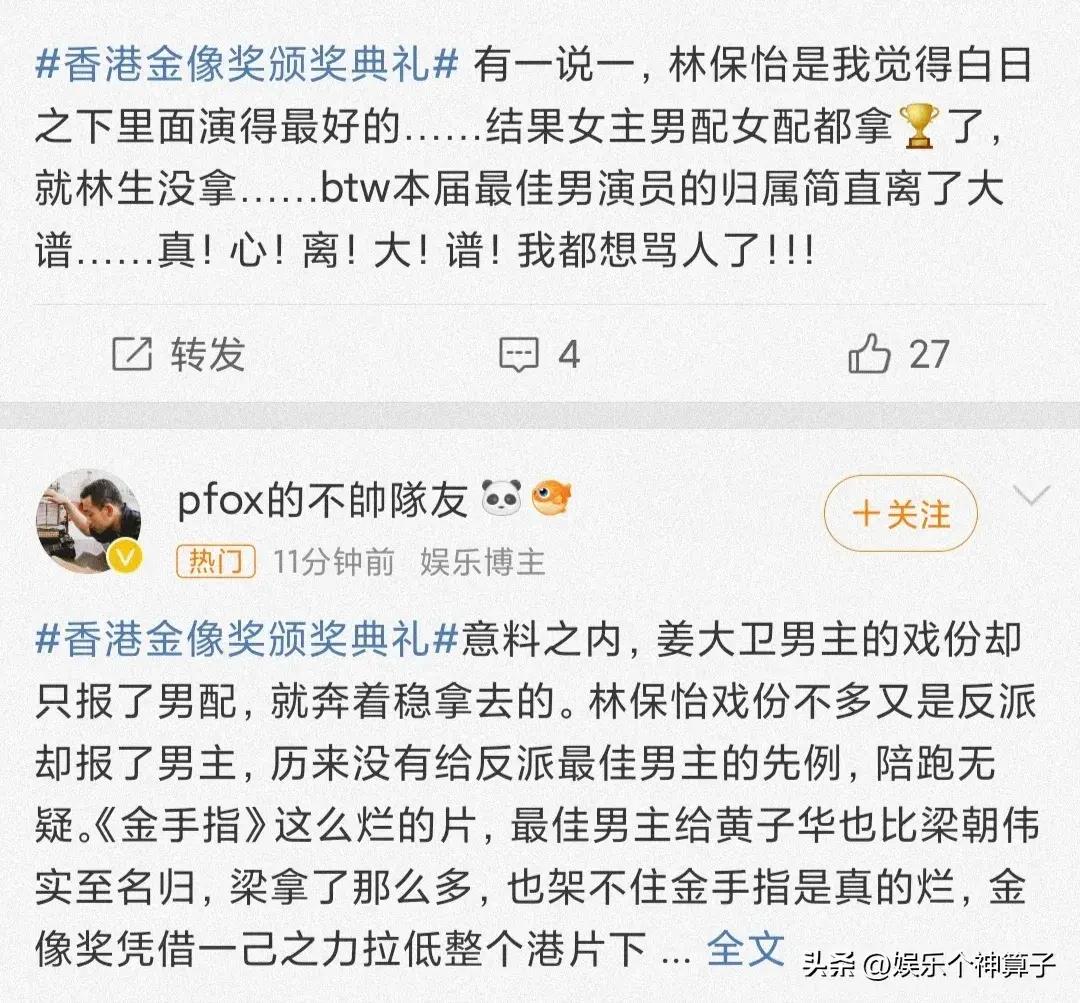 不過,在最佳男主角的爭奪上,確實存在一些爭議,梁朝偉六封影帝,而特別被看好的林保怡全場陪跑,顆粒無收,很多網友爲其鳴不平。