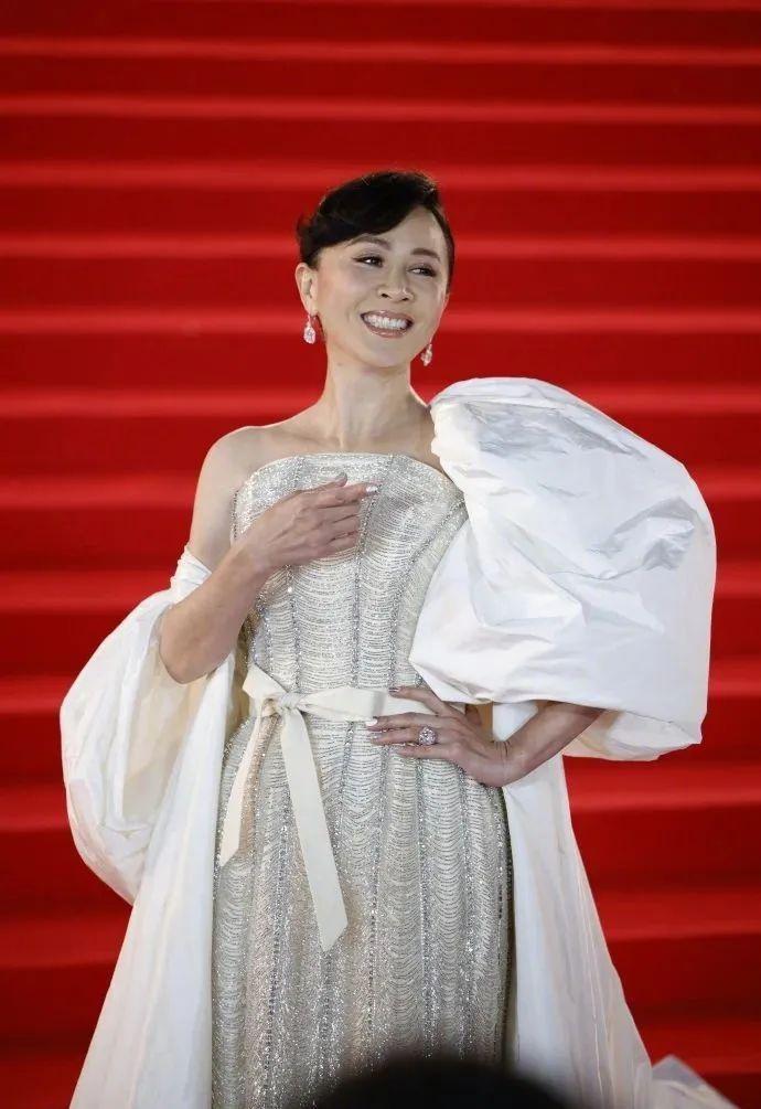作爲重磅級嘉賓,劉嘉玲的紅毯造型也是相當隆重。
