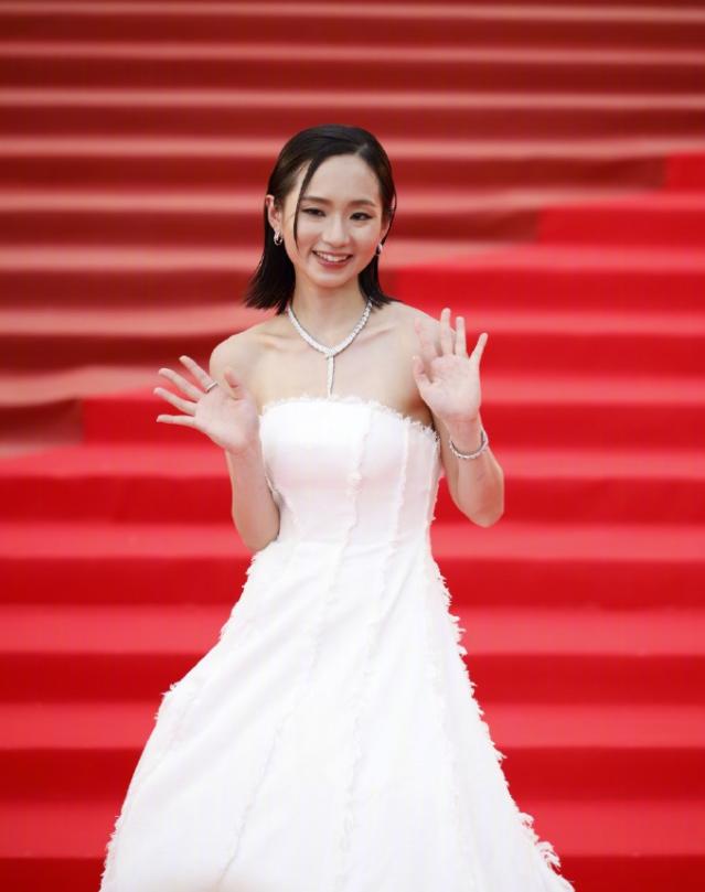 紅毯上,她的這身白色個性禮服,主打一個“怪”。