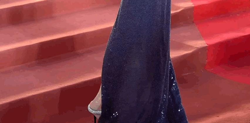裙身的全亮片設計讓她在閃光燈下整個人都在發光,這個紅毯樓梯上的動圖,將性感二字淋漓盡致的展現出來。