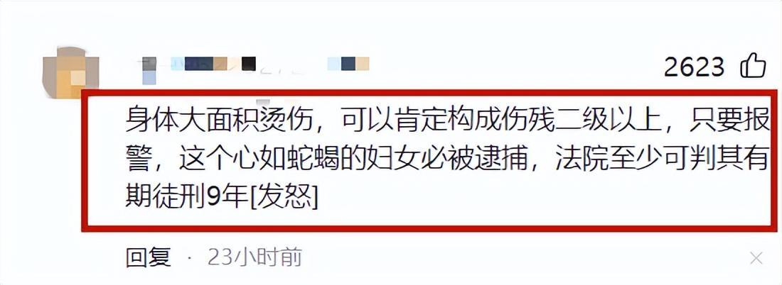也有網友表示妻子潑熱水的的行爲將事情的性質升級了,已經涉嫌故意傷害。
