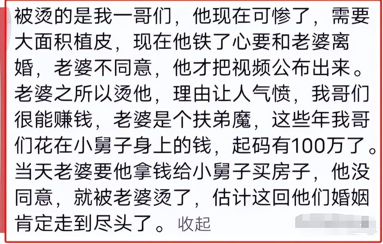 就在大家熱議的同時,一位自稱被潑熱水丈夫的朋友發聲爆料了。