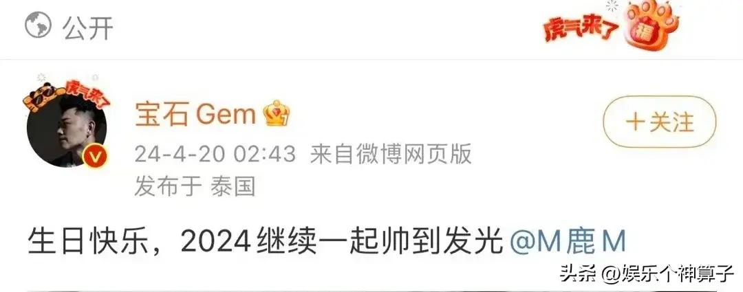 4月20日,鹿晗迎來34歲的生日,關曉彤卡在00點00分在社交平臺發文,爲男友送上生日祝福,不得不說,真的好用心,沒有親密的合照,也沒有甜言蜜語,完全不耽誤小情侶撒糖!