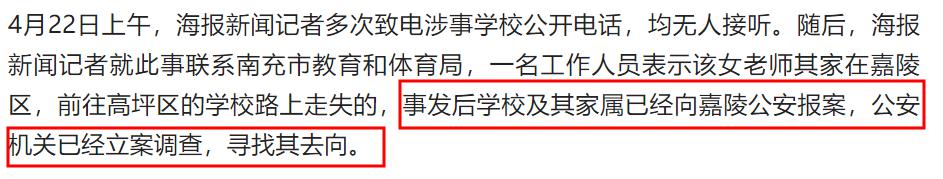 事實也證明,涉事女老師失蹤的確不止一天兩天。