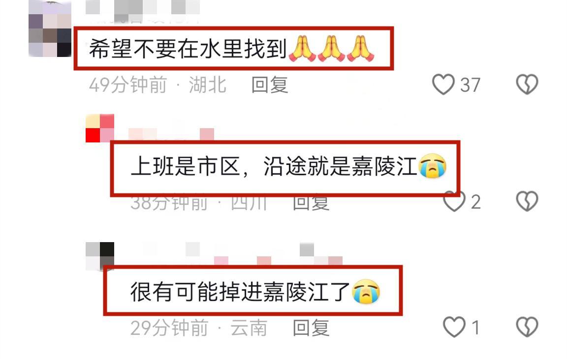 有網友建議到水裏找找,懷疑女老師掉進嘉陵江或者被人扔進嘉陵江。