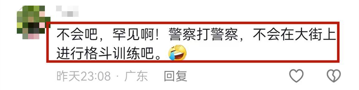 有網友說這是2名交警在大街上進行格鬥訓練,切磋武藝,不是打架。