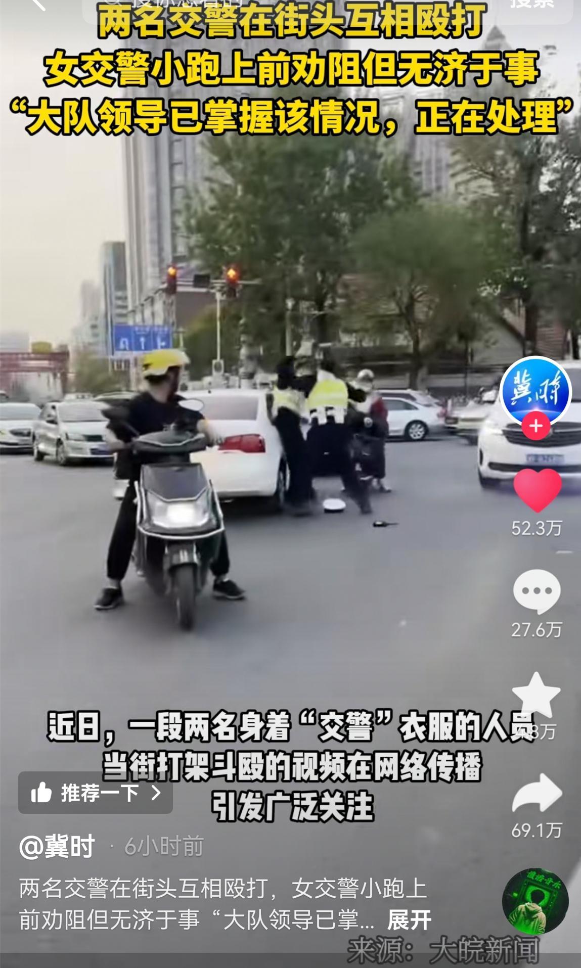 近日,天津的2名交警火了,他們倆人竟然在大街上打架鬥毆。