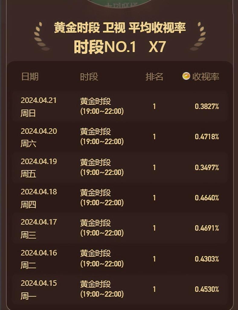 該劇播出後連續7天收視第1,上線7天累計播放量破5億。