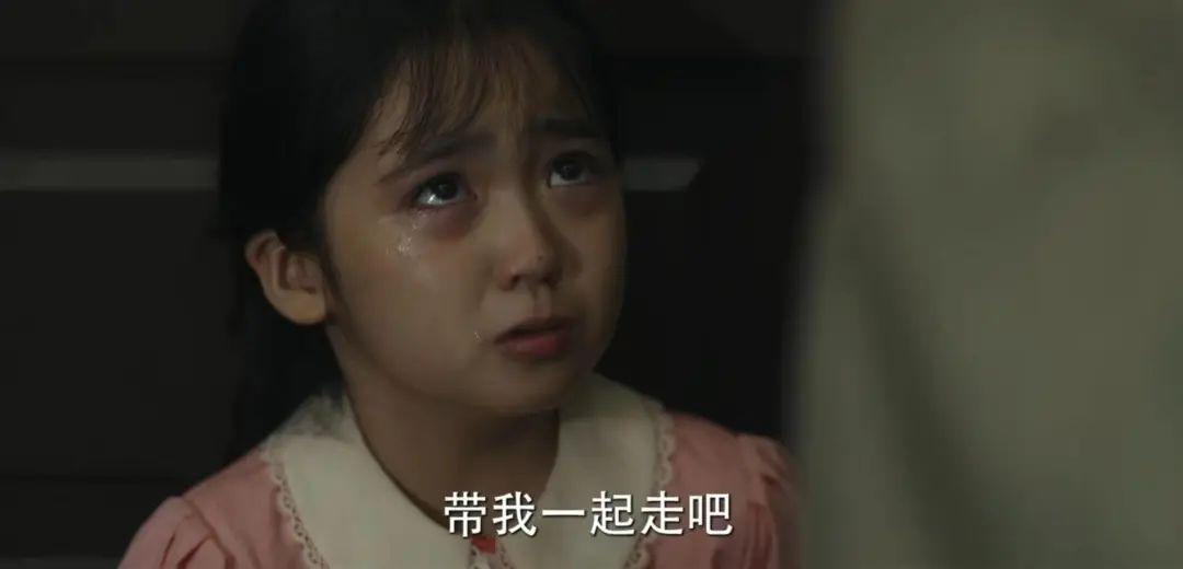 被男主救後,她小聲哭泣,滿臉的淚水和鼻涕展現出一個小女孩的難過和害怕。