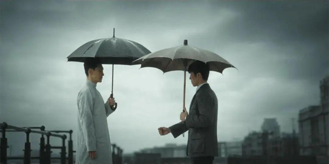 比如男二陳浩和鄧銘遠在雨中街頭見面時。