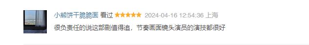 “這部劇值得追,節奏畫面鏡頭演員的演技都很好。”