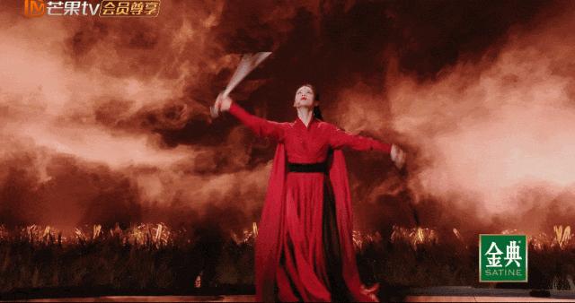 當她用手把眉心的花鈿一抹,紅妝立刻變武裝,秒從花木蘭變成了孫悟空,瞬間英氣十足。