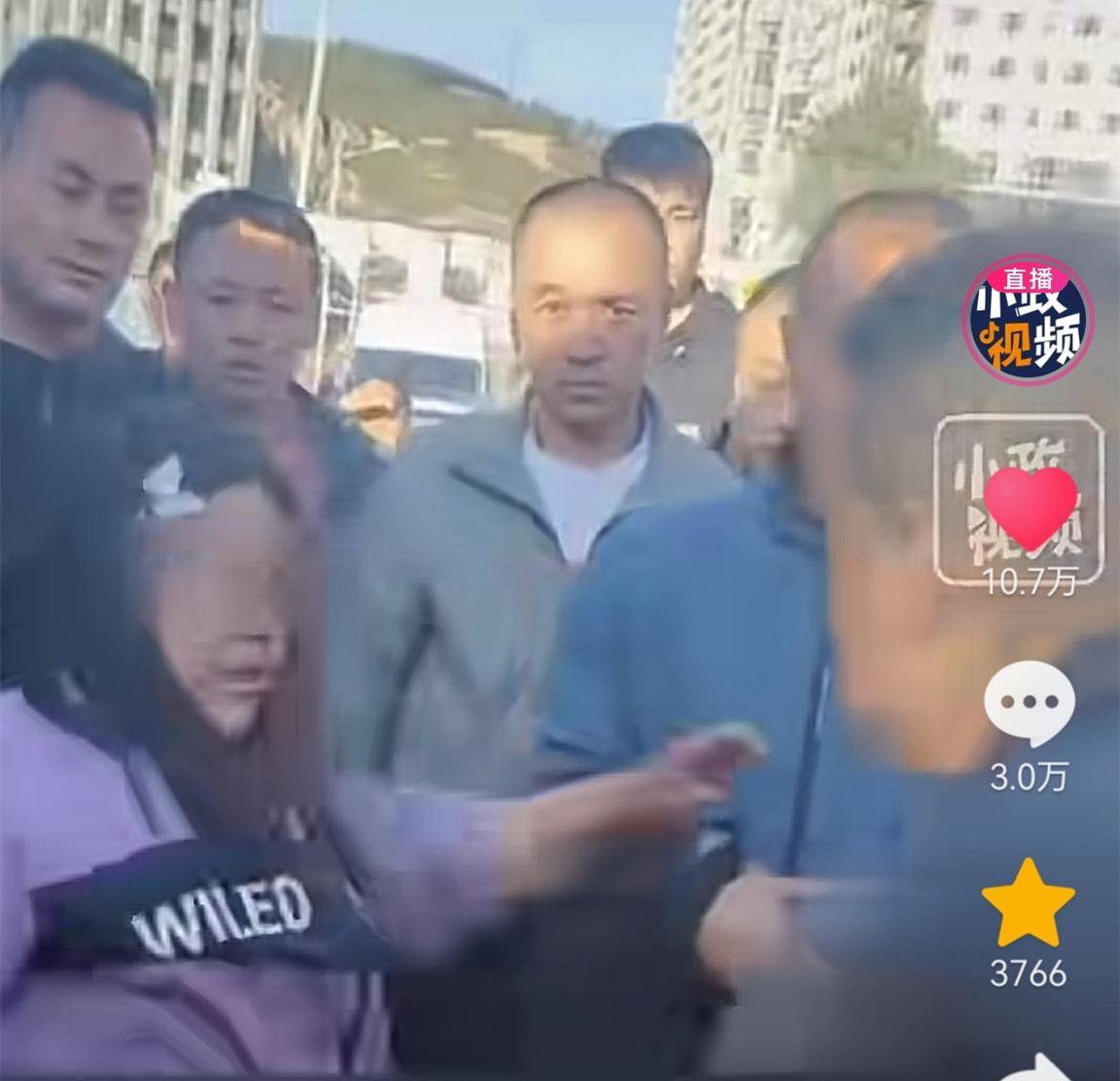 從圍觀羣衆的言語中可以判斷,男子應該是一名城管,但奇怪的是他並沒有穿制服。