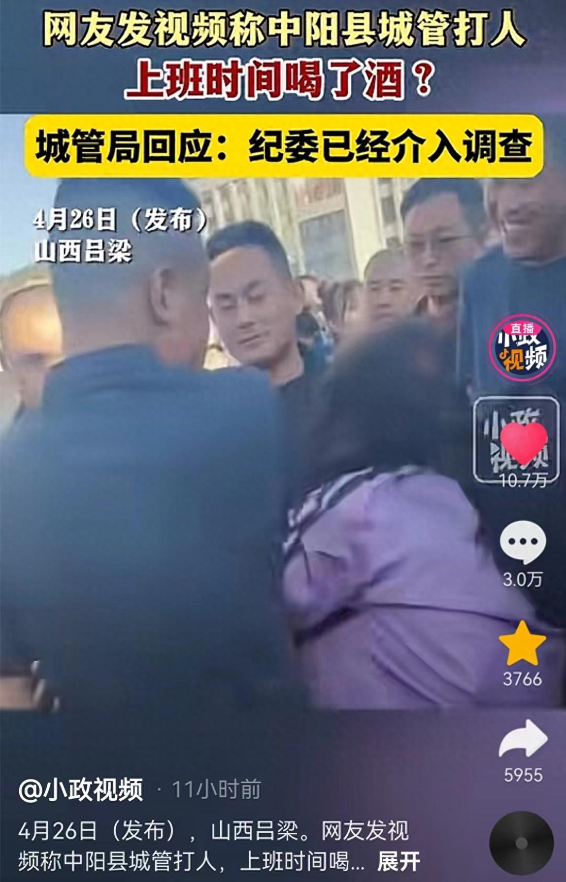 4月26日,山西呂梁市中陽縣的一名城管引發網友衆怒,他竟然上班時間喝酒,還打人,打的還是女人。