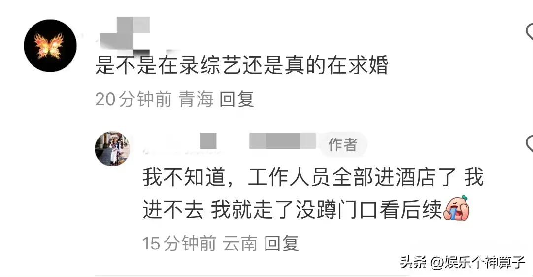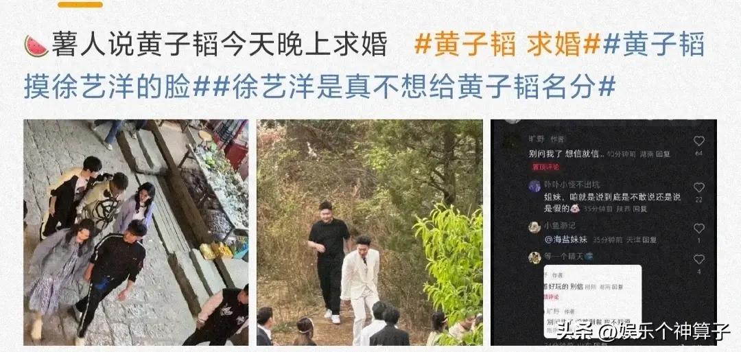 事情的起因,網上爆料稱黃子韜今晚求婚,女方正是藝人徐藝洋,一些網友紛紛留言,詢問到底是真是假,看爆料者的語氣,還真不像是信口開河,還有好奇者表示一直跟到酒店門口,因爲無法進入,後續情況不得而知。