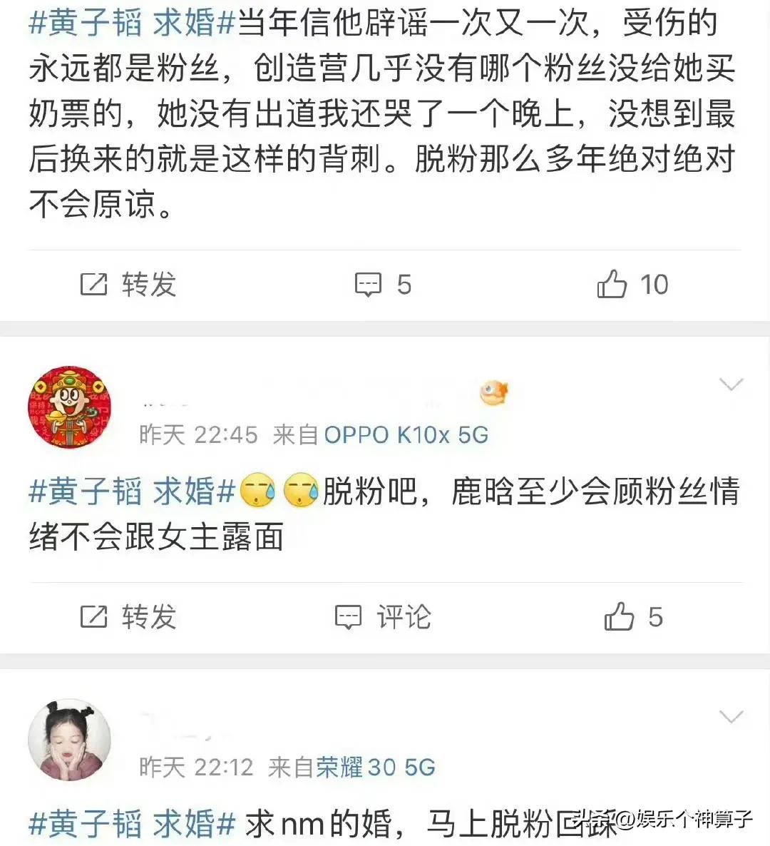 曝黃子韜求婚後續,本人未回應,大量親密畫面流出,粉絲選擇脫粉