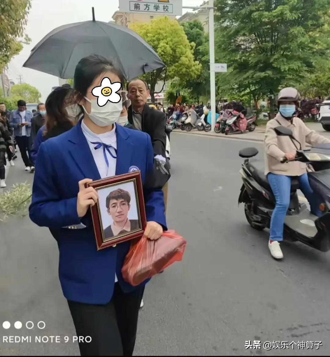 畫面中,女兒手捧爸爸的遺像,眼神中透露出悲傷,看年齡大概14、15歲的樣子,應該還在上初中,隔着屏幕,都能感受到痛失親人的心情,旁邊還有很多路人駐足觀看。
