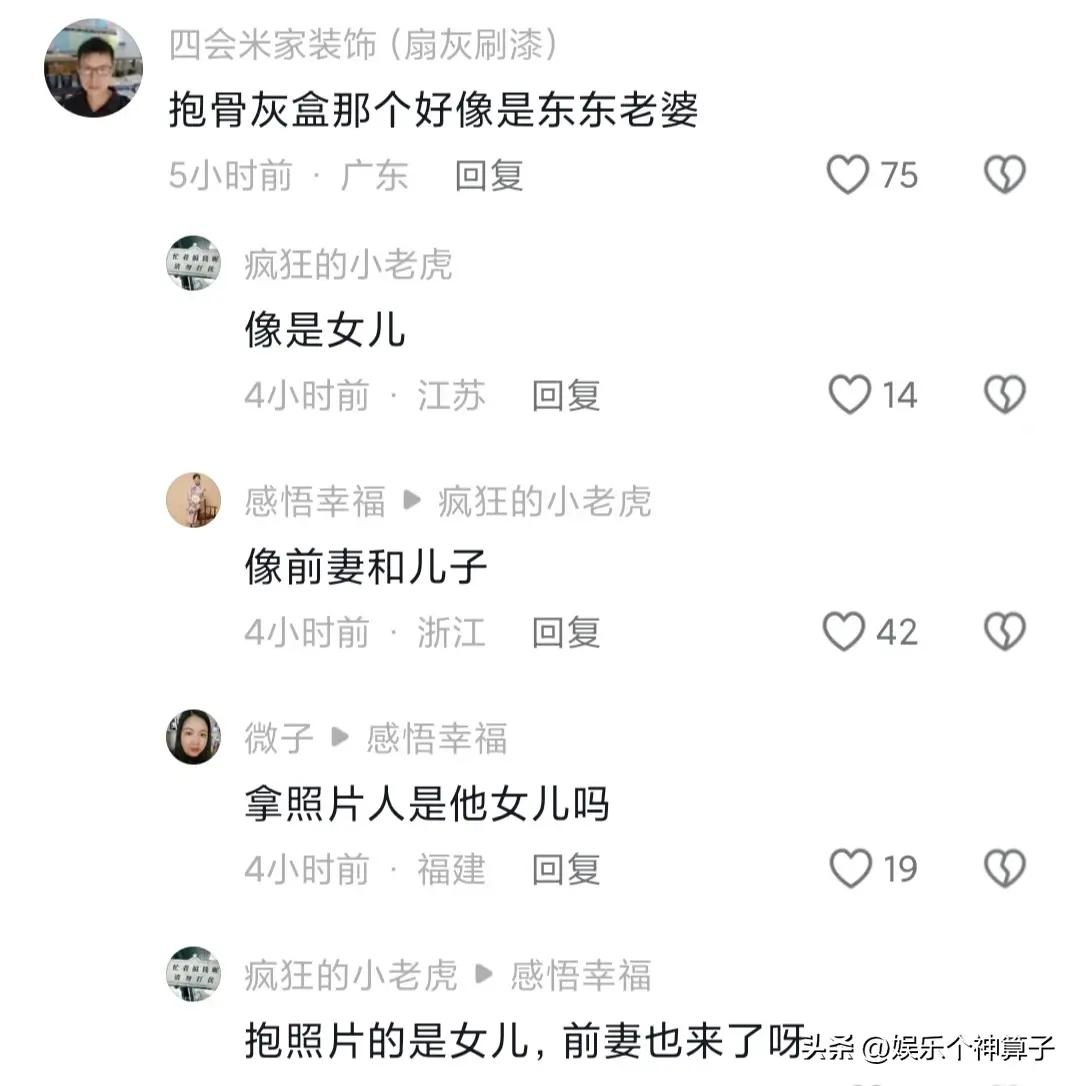鏡頭一轉,兒子手捧骨灰盒,大概這個年齡還不能深切體會生離死別的感受,咱就說,這麼小就失去父親,看着讓人心酸,有網友認出身旁的黑衣女子正是東東的前妻,也來到現場,送前夫最後一程,面容憔悴十分悲傷。