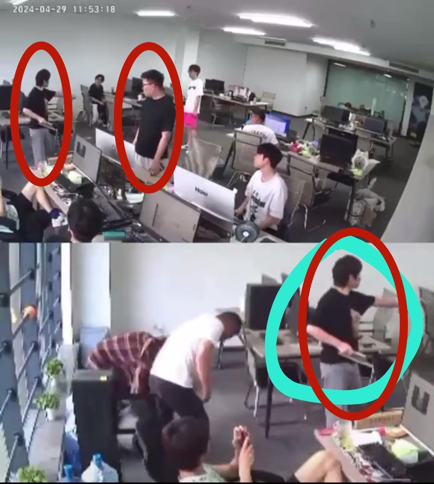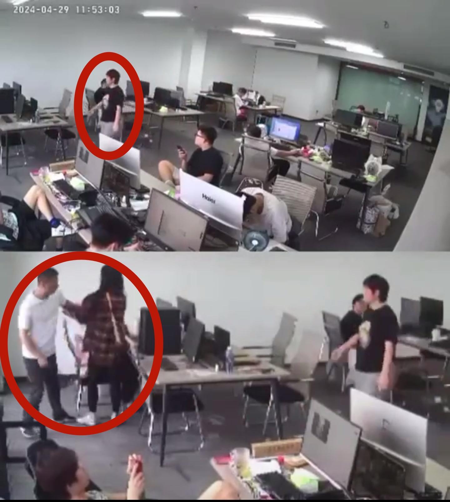 在視頻的最後,可以看到另一名男同事在打電話,至於是不是報警,不得而知。