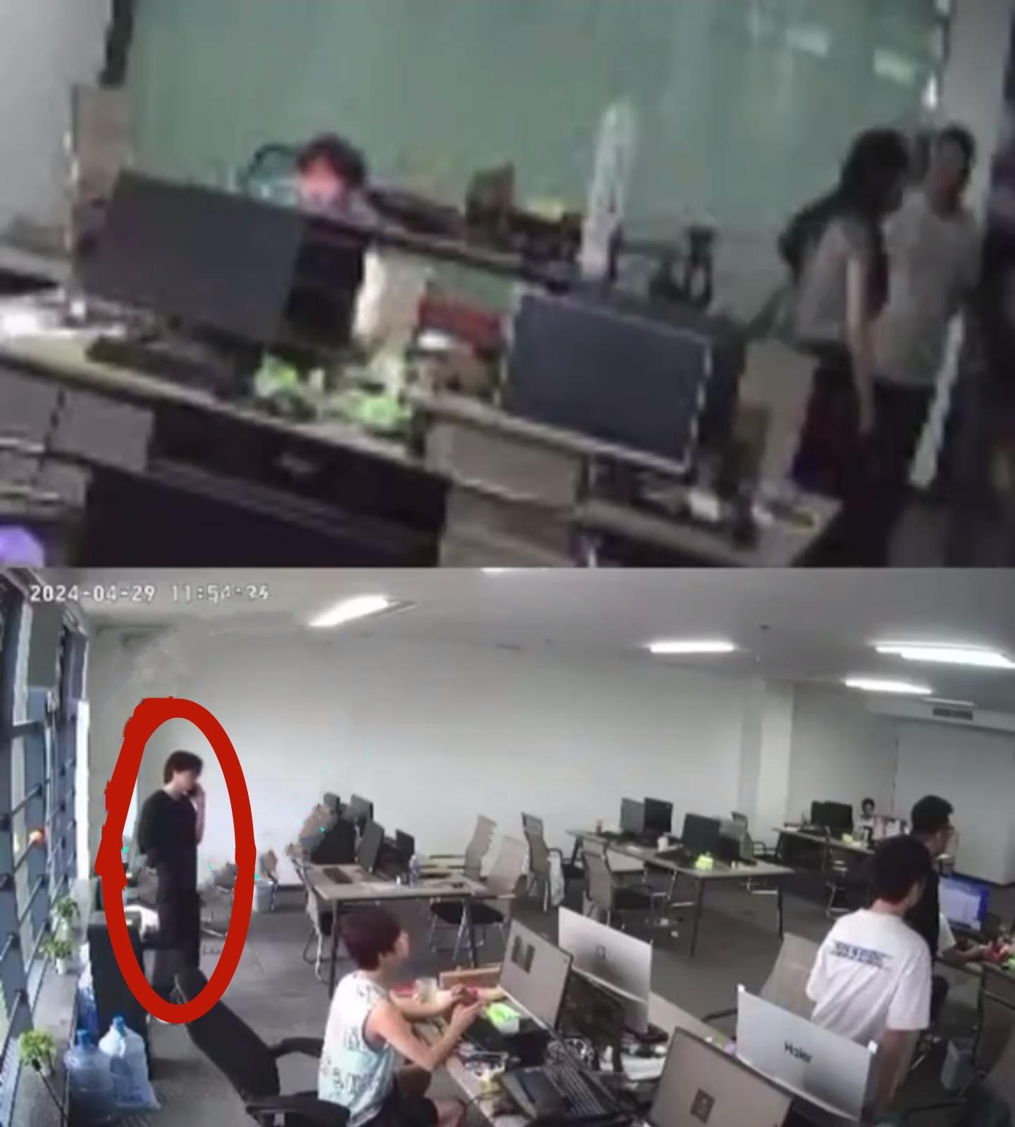 而灰衣女子也被3人拖離了辦公室,消失在監控畫面中,只剩她的同事望着她被拖走的方向。