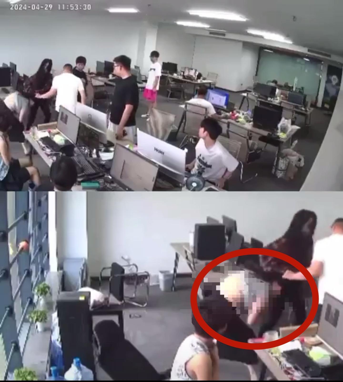 女子在辦公室遭3人羣毆,現場畫面觸目驚心,男同事不敢上前施救