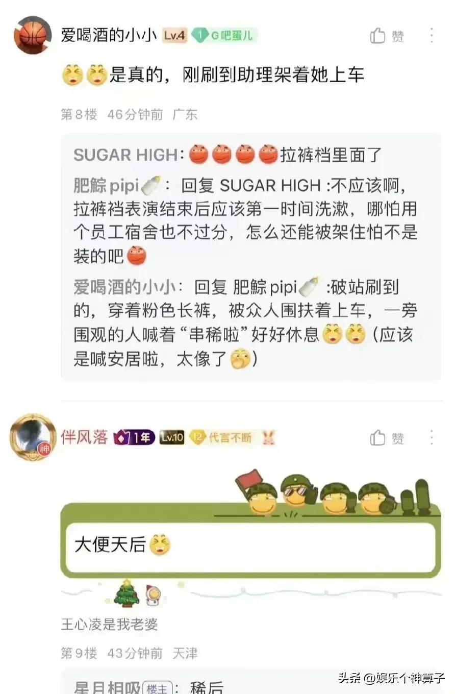 爆料者解釋,稱刷視頻看到張韶涵穿着粉色長褲,被衆人扶着上車,圍觀的人大喊“竄稀了”,回去好好休息,又補充到,有可能聽錯了。
