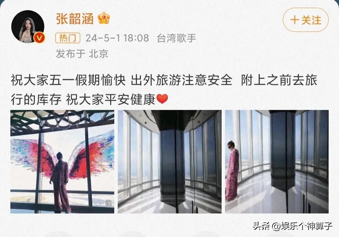 5月1日晚上,張韶涵再次發文報平安,希望大家出行注意安全,並曬出一組之前旅遊的照片,粉絲紛紛留言,希望偶像注意休息,早日康復。