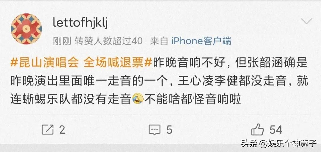 崑山演唱會風波鬧的沸沸揚揚,全場喊退票,網友透露,歌迷冒雨觀看,結果出現大拼盤,中間穿插不算知名的歌手和樂隊,有種被欺騙的感覺,同時張韶涵、李健、王心凌的賣力表演,也讓大家留覺得心疼。