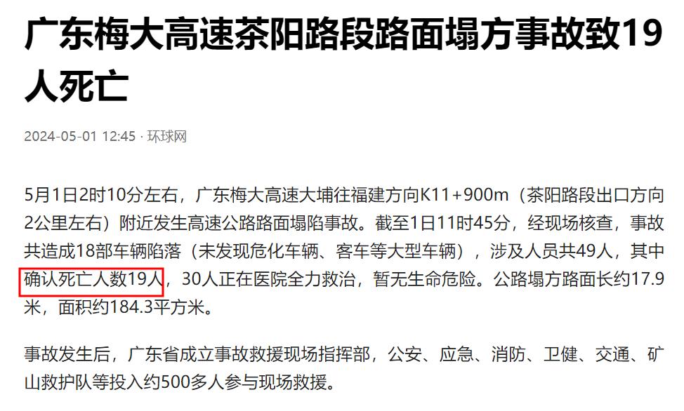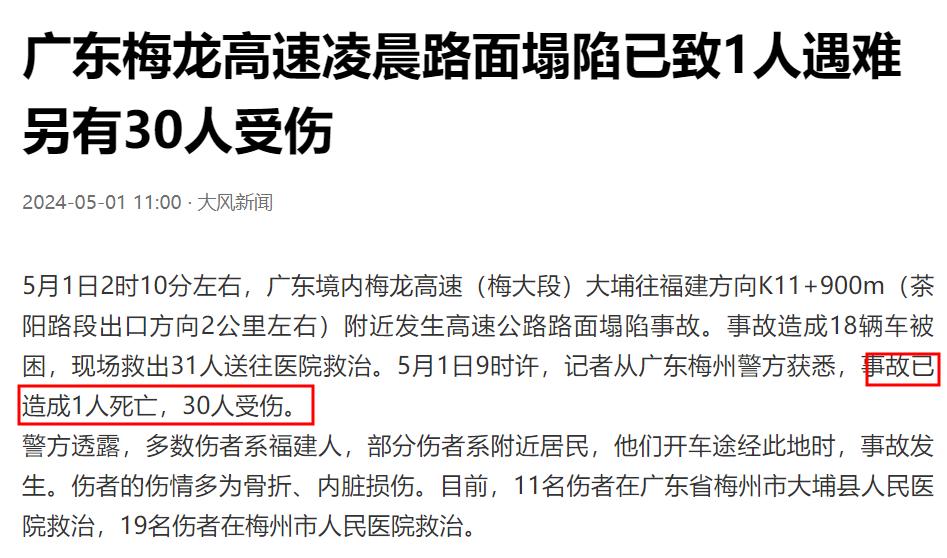 太令人心痛了!萬萬沒有想到,五一假期第一天就發生了一起嚴重的高速坍塌事故,截止目前已經造成24人死亡,30人受傷。