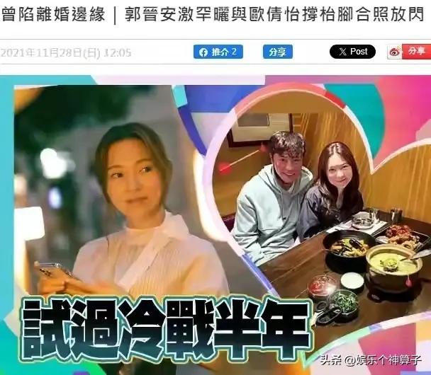 5月2日,據媒體報道,郭晉安歐倩怡宣佈結束18年的婚姻,並透露夫妻二人在兩年前就已經分居,很多人表示不敢相信,畢竟平時感情非常好,從來沒有任何緋聞。