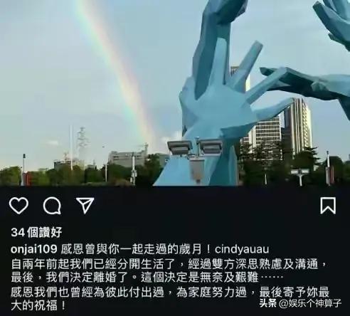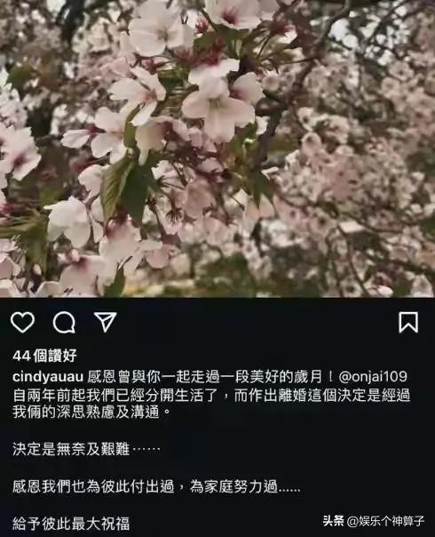 隨後,郭晉安和歐倩怡在社交平臺發文,正式宣佈離婚,看來兩人已經商量好了,就連文案都一模一樣,給人的感覺,這種方式,貌似成了很多明星的模板。