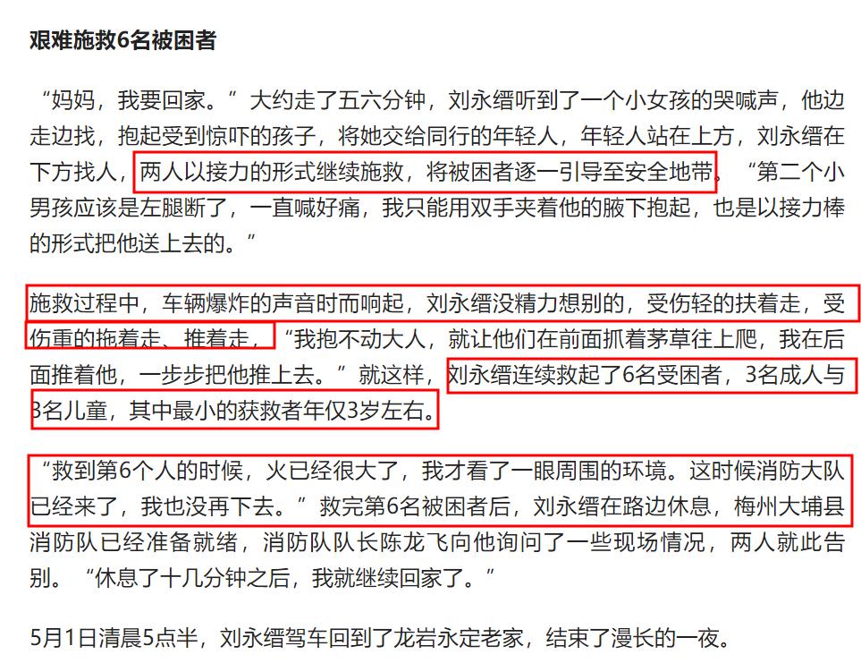 現場下到事故現場救人的是英雄劉永縉,他救了6個人。
