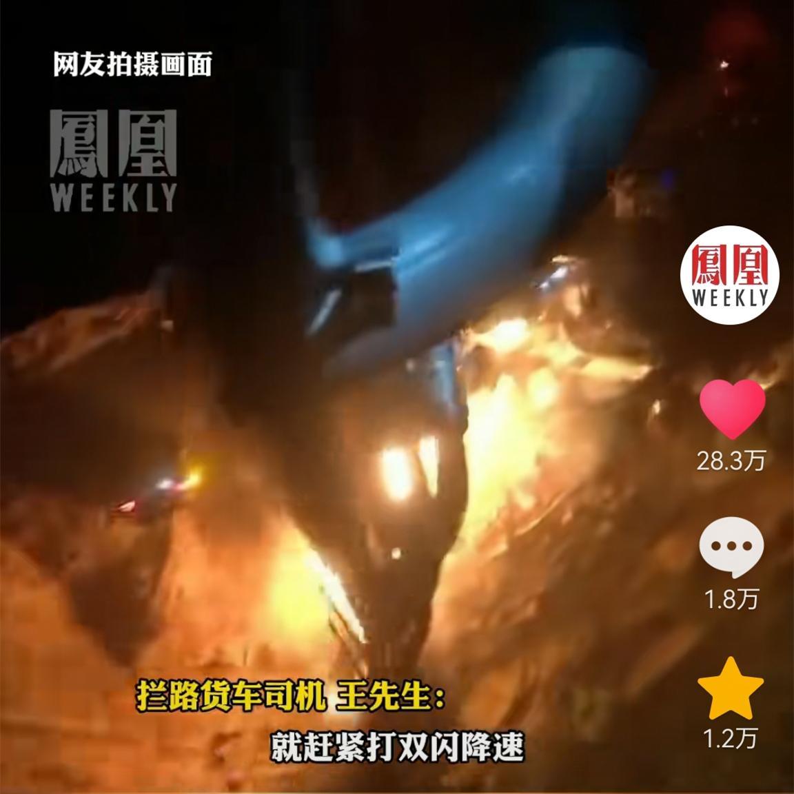 這邊開過事發路段的饒女士一家人在攔車救人,那邊最早到達事發路段的司機也在努力攔車救人。