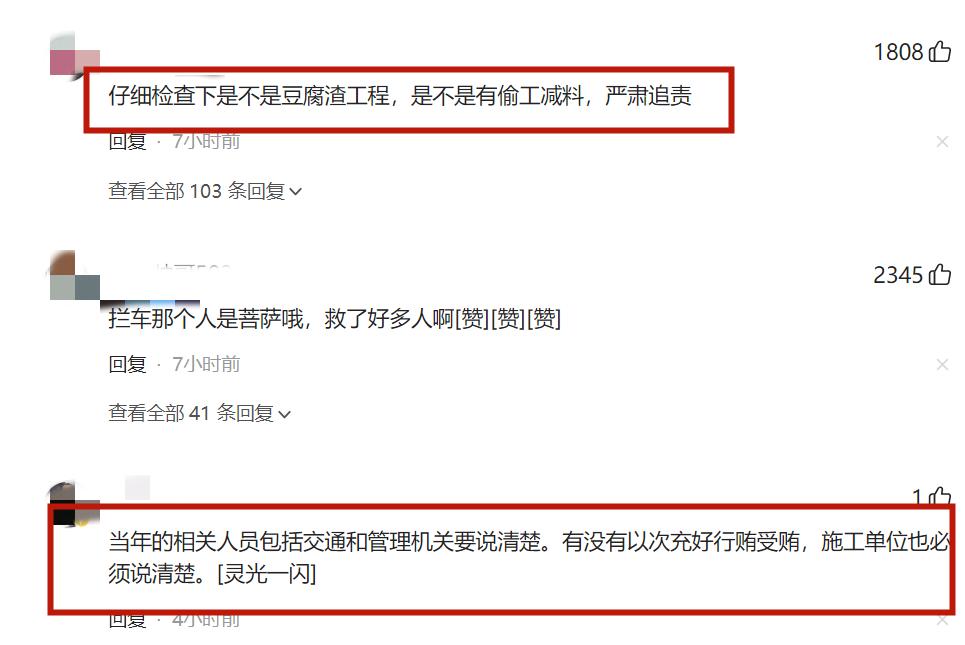 有網友認爲梅大高速的質量有問題,怒責其是豆腐渣工程。